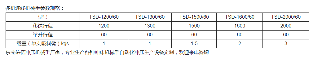 多臺連線沖壓機械手主要適用于產(chǎn)品需求量大、幾種切換頻率不高的沖壓拉伸場合。