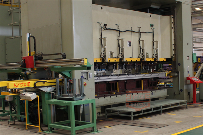 佑億三次元機(jī)械手作用:是在自動(dòng)化設(shè)備的基礎(chǔ)上,根據(jù)沖壓生產(chǎn)特點(diǎn),專門為實(shí)現(xiàn)沖壓自動(dòng)化無人生產(chǎn)而研發(fā)的設(shè)備。能取代人工在各個(gè)沖壓工位上進(jìn)行物料沖壓、搬運(yùn)、上下料等工作,整條生產(chǎn)線效率達(dá)到5秒。本自動(dòng)化設(shè)備對(duì)于沖壓等重復(fù)性、危險(xiǎn)性、節(jié)拍高的加工行業(yè),在節(jié)約人力勞動(dòng)成本,提高人工及設(shè)備安全性,保持產(chǎn)品產(chǎn)能、 質(zhì)量、工藝穩(wěn)定性等方面是現(xiàn)代化工業(yè)化“開拓創(chuàng)新”的重要精神體現(xiàn)。柔性沖壓自動(dòng)線大多由一臺(tái)雙動(dòng)拉伸壓力機(jī)或多連桿單動(dòng)拉伸壓力機(jī)和4~5臺(tái)單動(dòng)壓力機(jī) 組成流水線,生產(chǎn)大型車身覆蓋件,安全性高,沖壓質(zhì)量好。生產(chǎn)線上布置自動(dòng)化上下料系統(tǒng)。