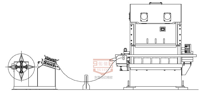卷料沖壓時(shí),不管是沖床前段還是后段全是自動(dòng)化操作,此意示圖是GO二合整平機(jī)、NC伺服送料機(jī)配沖床+多工位機(jī)械手